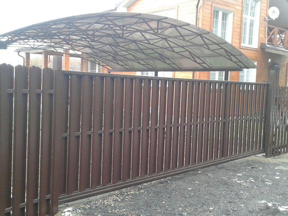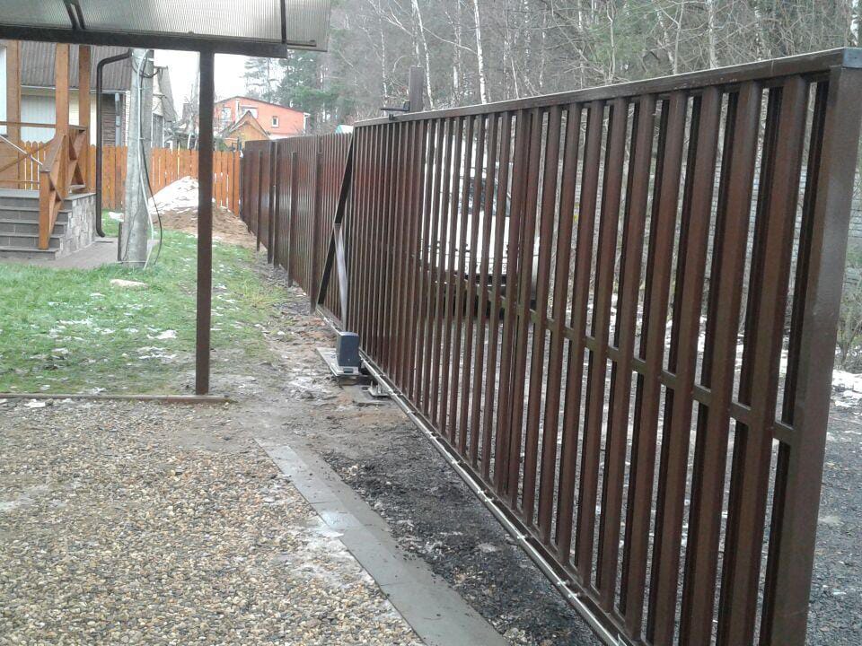 Откатные ворота из евроштакетника на винтовых сваях (цена на бетонном основании +20000р)